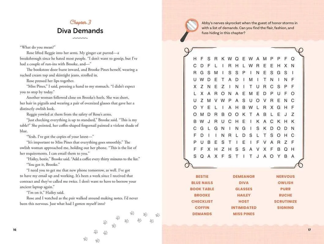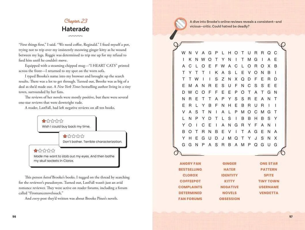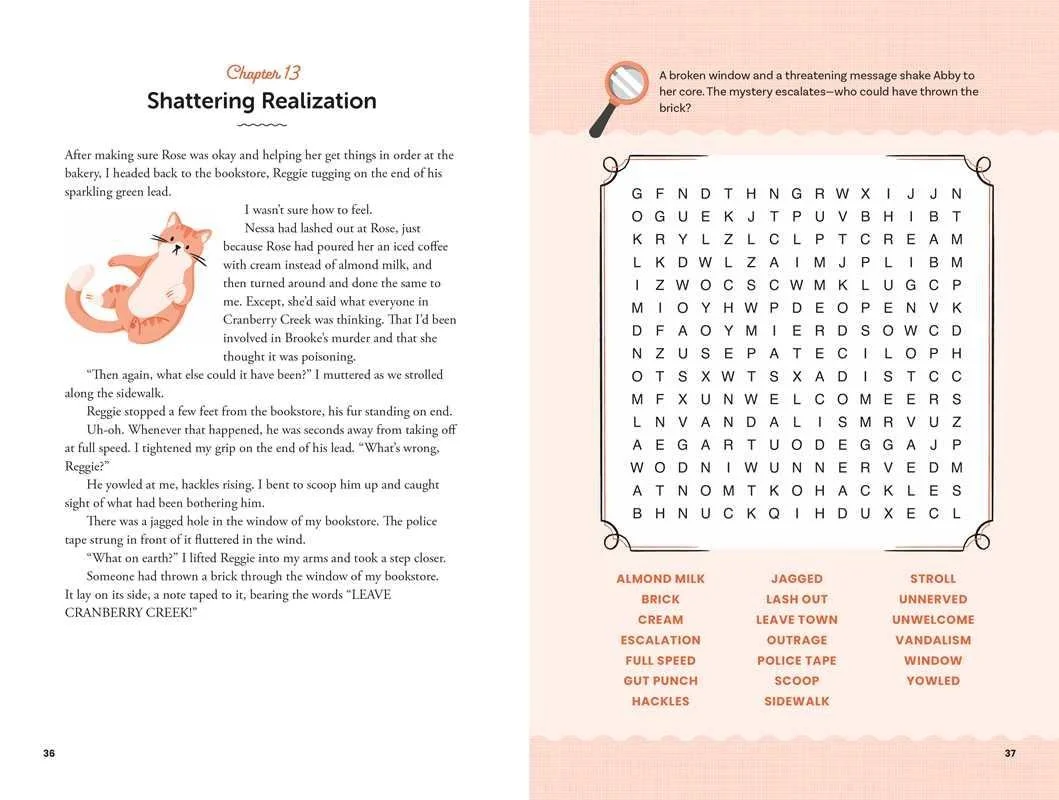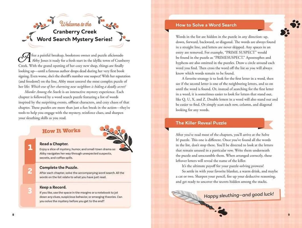 A cozy mystery story combined with themed word search puzzles creates an interactive and charming whodunit experience in this fun new format that invites you to solve the case as you uncover clues. Abby Jones has it all figured out: moving to Cranberry Creek will give her the fresh start she needs. From opening her brand-new bookstore on Main Street to learning to love her busybody landlady, Myrna, to spending her time on her favorite cozy hobby (word searches!), Abby has her hands full. But when a famous author is mysteriously murdered at her bookstore’s opening event, her new future is at stake. It’s up to Abby, with the help of some new friends, to solve the case.